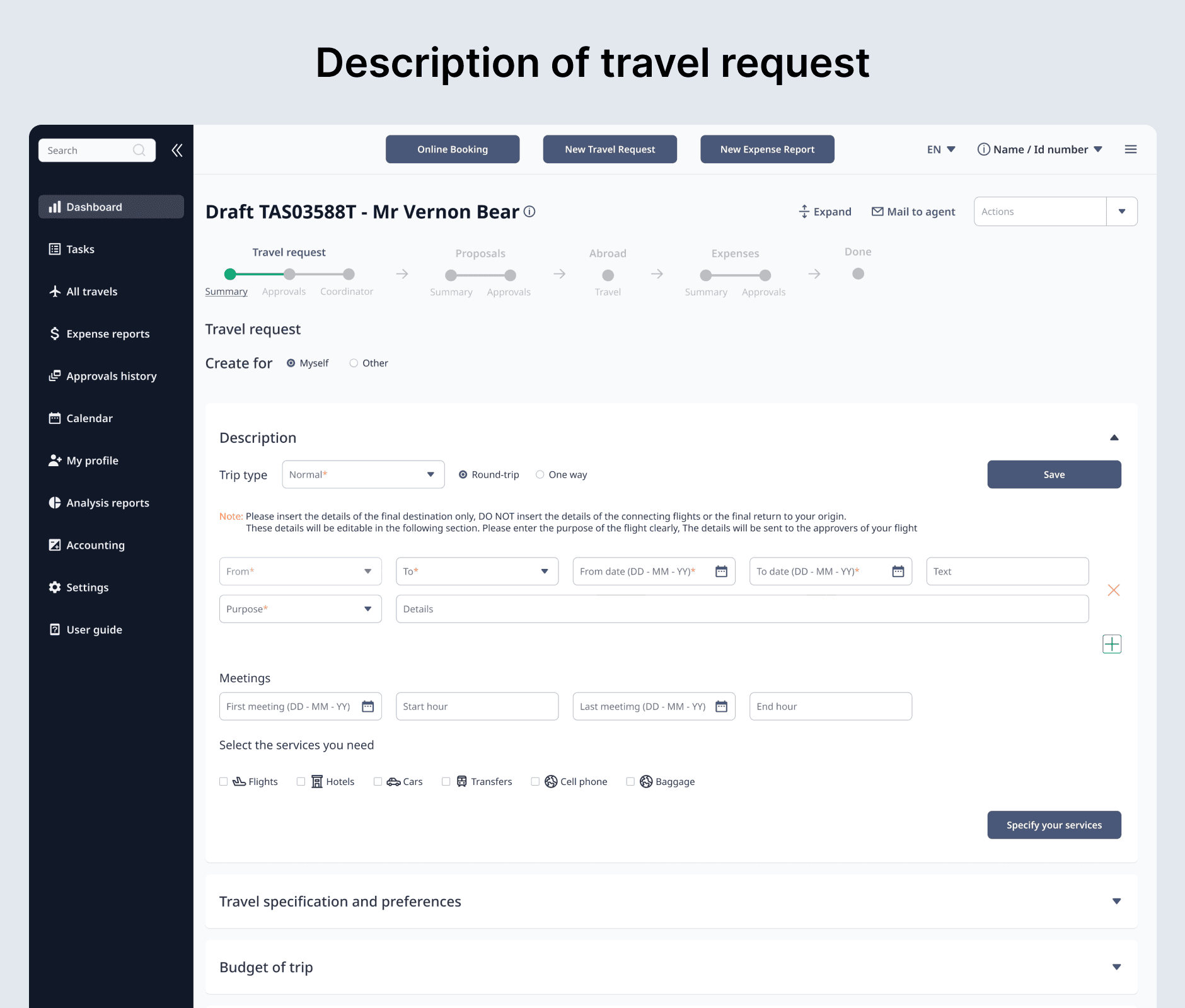 Я работала над полным редизайном Business Travel & Expense Management Solution — корпоративной платформы, которая должна помогать сотрудникам оформлять командировки, бронировать билеты, отправлять отчёты о расходах и контролировать бюджеты. Проблема была в том, что текущий продукт жил в 2015 году: сложная логика, перегруженные формы, непоследовательное визуальное оформление и постоянные вопросы от сотрудников вроде «а где заполнить аванс?» или «почему после бронирования у меня пропадает запрос?». Менять можно было только фронт - бэкенд переписывать не планировалось. При этом продукт должен был работать сразу на английском и иврите, что накладывало ограничения на структуру интерфейса и компоненты.